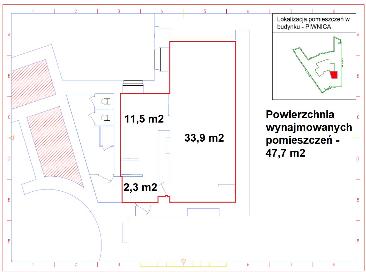 CENA WYWOŁAWCZA: 6,00 zł netto miesięcznie za m. kw. powierzchni (do stawki doliczony zostanie podatek od nieruchomości)
