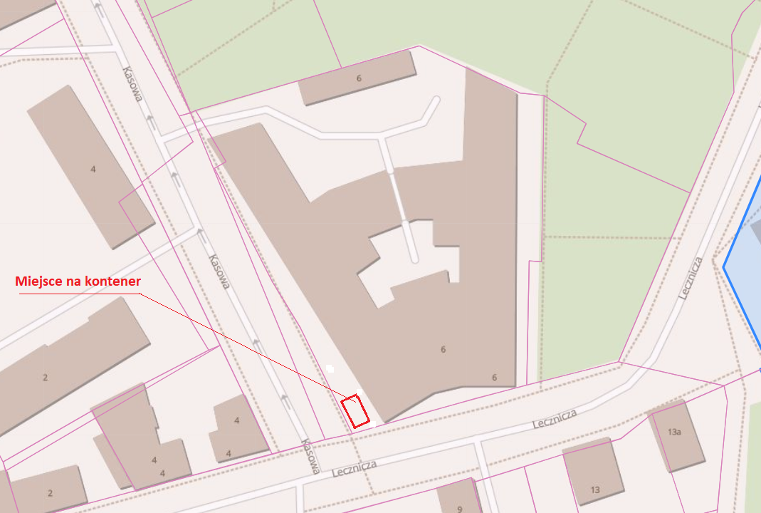 - Przedmiotem postępowania jest dzierżawa powierzchni 30 m2 znajdującej się obok Przychodni przy ul. Leczniczej 6 z przeznaczeniem na kontener do pobierania wymazów od pacjentów w kierunku diagnostyki zakażenia wirusem SARS-CoV-2. Miejsce przeznaczone do dzierżawy pokazane jest w załączniku numer 1 do ogłoszenia.